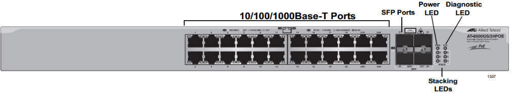 Управляемый стэкируемый коммутатор AT-8000GS/24POE с 24-мя портами Gigabit Ethernet с поддержкой PoE и четырьмя слотами SFP 1000Мбит – превосходный выбор для организации сетевой инфраструктуры в офисе.