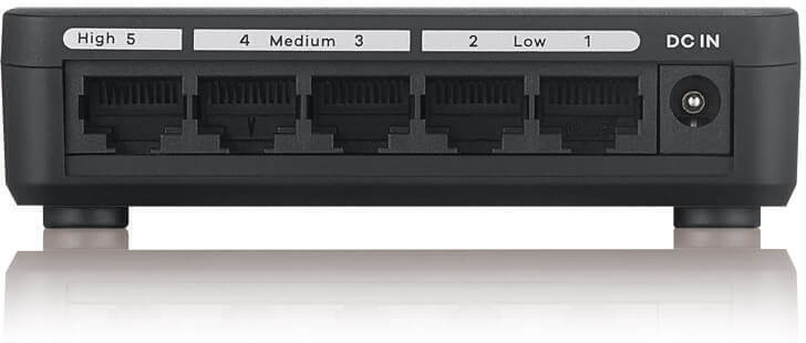 В Zyxel GS-105S v2 используются порты Gigabit Ethernet с автоматическим определением скорости и удобными светодиодными индикаторами, по которым можно сразу определить состояние и активность соединения